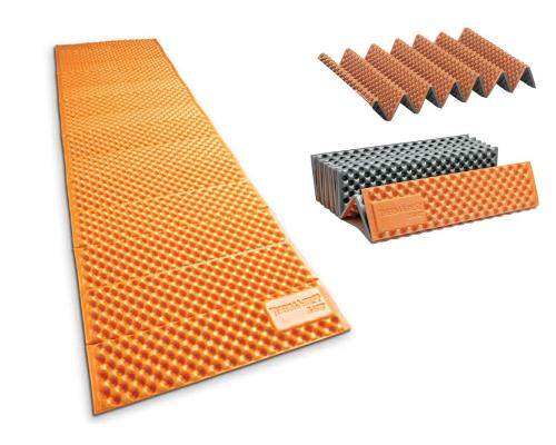 There's nos substitute for a good night's sleep when camping and while most people concentrate on the sleeping bag it's what's under the bag that really makes the difference. Over the last 20 years the self-inflating mattress has become the default choice for most people, but when your mattress becomes self deflating in the middle of the night there's little hope of a decent sleep. Yes there's glues and patches, but even if you can get them to work they're not really options "in the field". For the reliability of a traditional roll mat and the insulation of a self-inflating mattress we've been using the Cascade Design Z Lite fot over a decade now. Cascade Designs are the people behing Thermarest, the biggest name i self inflating mattresses, so they know a thing or two about sleeping. It may look like an egg box but it's a hi-tec egg box that traps the airin the dimples and uses amore durable base foam and softer upper foam to give a sleep that's generally comparable with a self-inflating mattress - but you can't burst it!. The downside is, of course its bulk and shape. At well over 6 feet long and articulated like an accordian it takes up a lot of pack space, but there are solutions and it's worth it to know you'll get a good night sleep. One solution is to cut it in half, giving 2 mats each just long enough to cover from hips to shoulders and each extremely light. The other option is simply to carry them outside your pack; with nothing to burst, hole or damage enough to have an impact on its use it's perfectly safe on the outside, even uncovered as rain just bounces off.