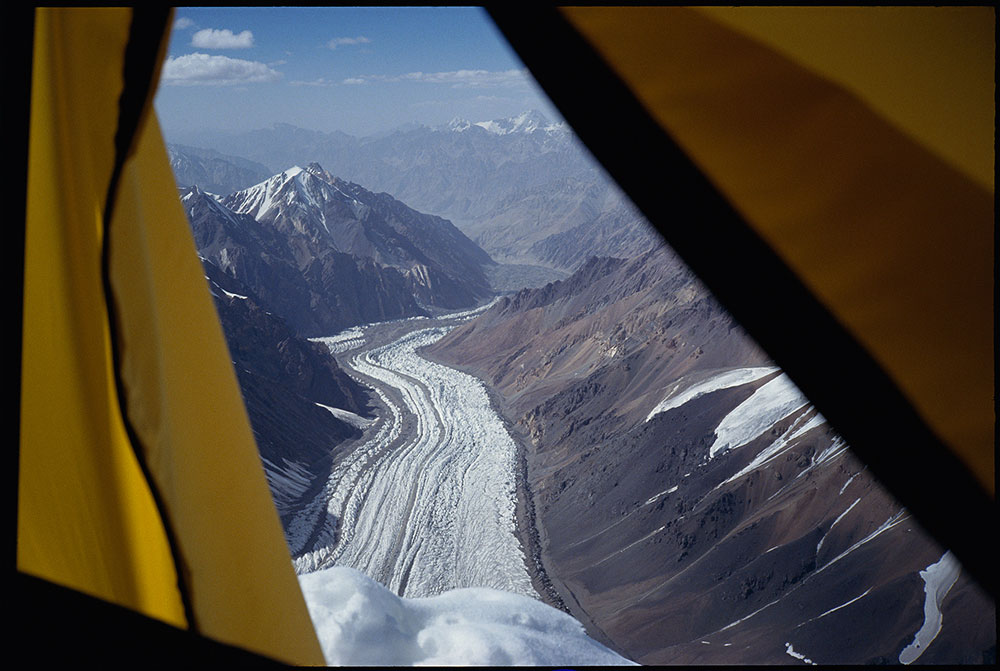 View from the tent with glacier 3000m below