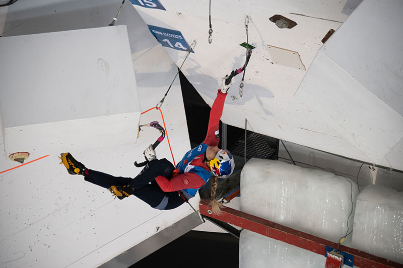 Competitive ice climbing started in the mid-90s. The UIAA World Cup Tour started in 2002 and Rob has been organising ice climbing competitions for six seasons. Now it’s really starting to take off and attracts top athletes from other climbing disciplines, such as the incredibly named Swiss athlete and world number one Petra Klinger. She was Boulder World Champion in 2016 before switching to over to dominate the ice climbing circuit.