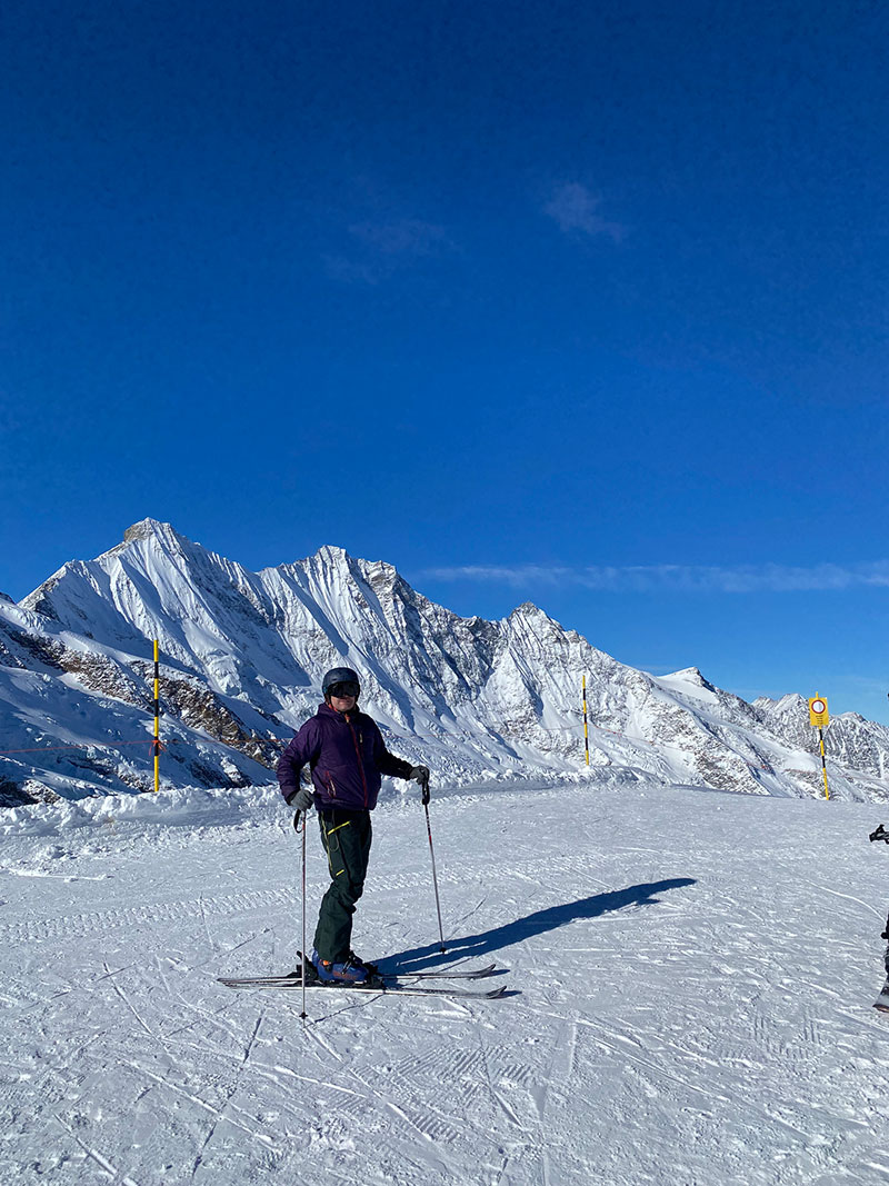 Heading back into Saas Fee, the ice circus had moved on for another year, leaving the cobbled streets for the skiers. Nine 4,000m peaks ring the town – the highest concentration of high mountains in Switzerland. This terrain means that this is one of Europe’s most snow-sure resorts, with the majority of the skiing between 2,500m and 3,500m. A smooth lift system gives easy access to the top station of Mittelallalin (3,500m) and a thigh-burning ski down of nearly 2,000m if the snow allows. Clipping into our skis, it was time for our final trip down into Saas Fee – a town where the action never stops.