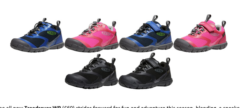 The all new Treadrover WP (£60) strides forward for fun and adventure this season, blending a sneaker like look and feel that juniors will love, with the robust protection and durability of a hiker that parents can trust. This sporty shoe is packed full of performance features, including a PFA free waterproof synthetic and textile upper, lightweight KEEN.FUSION midsole and super durable non marking rubber outsole. KEEN’s planet friendly Eco Anti-Odor system keeps feet smelling sweet, whilst a convenient lace lock bungee system (adjustable hook and loop closure in children’s sizes) gives a precise, secure closure, that is a synch for busy little explorers to fit. A low profile design gives a flexible fit and greater ground contact, whilst a PU insole with built in arch support, ensures reliable cushioning and comfort for little soles during all day adventures.