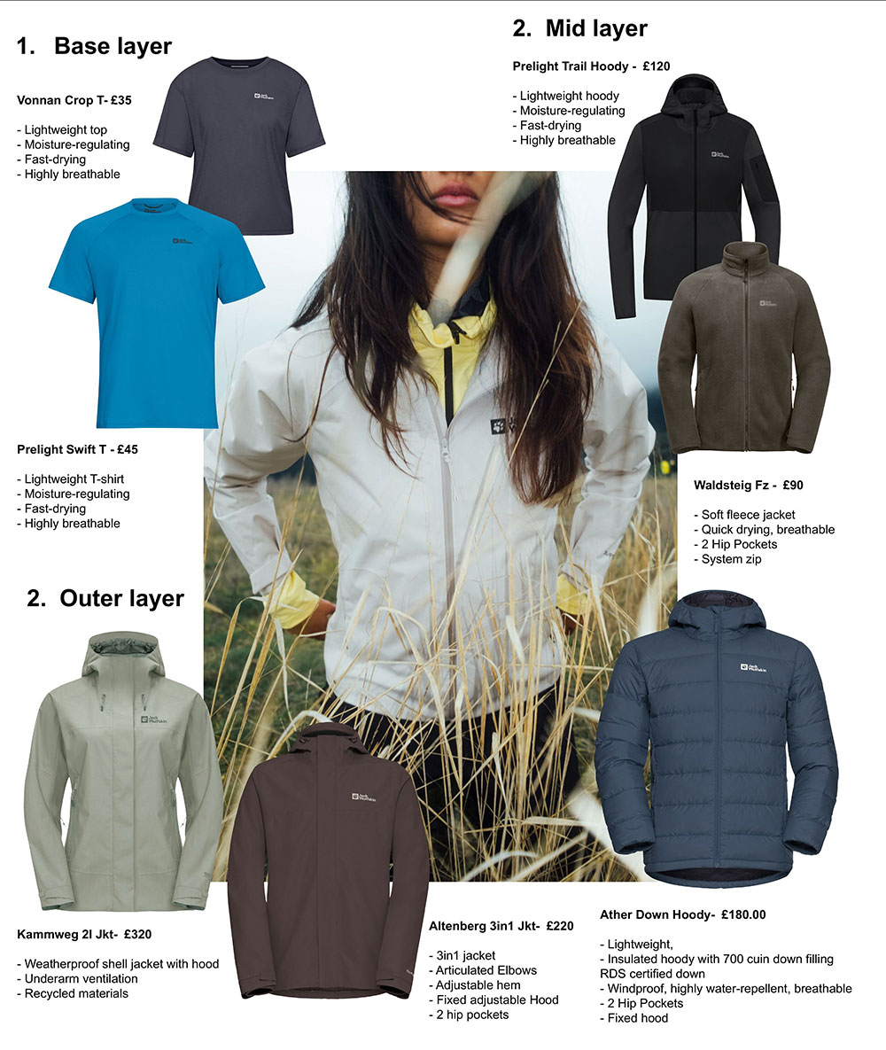 Jack Wolfskin's versatile collection is designed to work together, think breathable base layers, insulating mid-layers, and wetherproof shells.