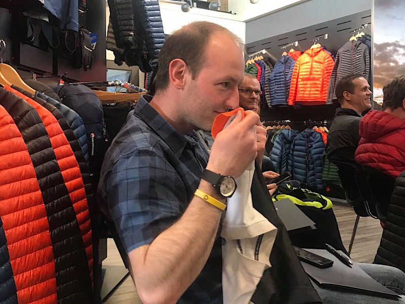 Stephen took us through the technology of Polygiene, it’s origins in the pharmaceutical industry and why they choose the outdoor industry. Essentially because we tend to sweat in whatever our chosen outdoor activity is, leading to us becoming a bit smelly! The science bit is they impregnate they fabric with silver salts, this is done as part of the production cycle meaning there is no extra energy used to carry out the process.