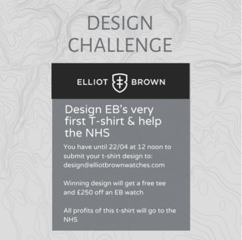 It's simple to enter and the challenge is going live on social today now! Simply send in your design for an Elliot Brown t-shirt (terms and conditions attached) before 12 noon on 22 April and the winner will receive a free t-shirt plus £250 off an Elliot Brown watch. ALL the profits made from sales of the t-shirt will be donated to the NHS. Are you in? Fancy sharing with your friends and followers on social?