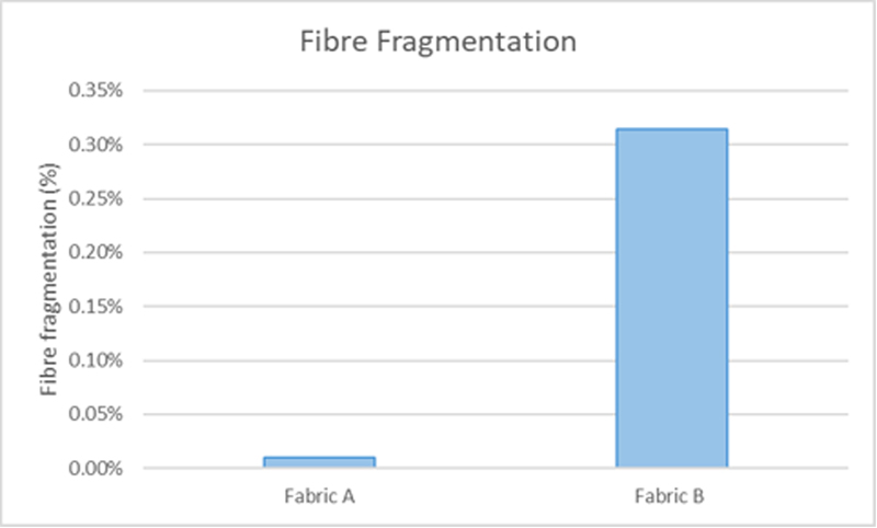 Dr Mark Sumner of the University of Leeds explains: “With the support of the TMC and their members we have been able to develop a reliable and robust method to quantify fibre fragmentation from textile fabrics. Using this method, we have been able to demonstrate that fragmentation is a complex process that is affected by materials, fibres, yarn structure, fabric structure and finishing processes. Simple statements that one fabric type is worse than another ignore this complexity and mislead product development teams. For example, when testing two fabrics which appear to be the same, in that they are both knitted filament polyester, Fabric B had over 30 times more fibre fragmentation than Fabric A (image below). There is much more work needed to fully understand how fabric material and structural factors influence fragmentation, but TMC is leading the charge in unpicking this complexity.”