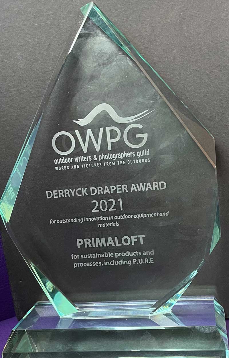 The Derryck Draper Award, named in memory of one of the OWPG’s founders and past chairs, is given to a member of the outdoor gear trade for outstanding innovation in outdoor equipment design and materials. This year’s award to PrimaLoft was announced at the Guild’s annual weekend and awards ceremony at Malham Tarn, Yorkshire on 8 October 2021.