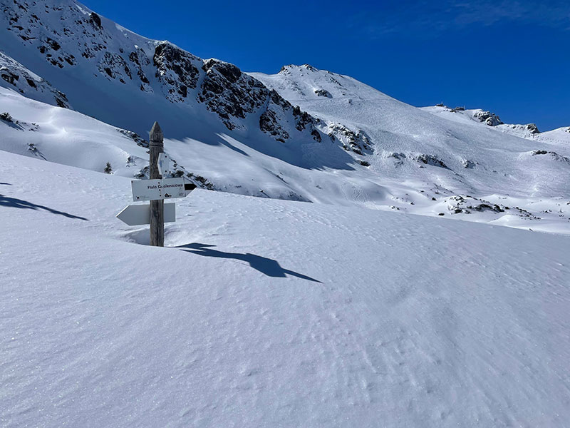 It was a glorious blue sky day with powder galore and we set off bellies full, past the Kolej krzeselkowa Gasienicowa chair lift to Zielony Staw Gasienicowy lake. Here there were two possible summits for us - to the right and left. Koscielec at 2155m and Svinica 2301m. Of course we did both, stopping below the top, and skied down in hero, face spraying snow! After about 650m climbing, we headed back to the hut, collected our things and skinned another 150m to the chairlift to get to the top of Kasprowy Wierch and skied back down, on and side piste, to the valley.