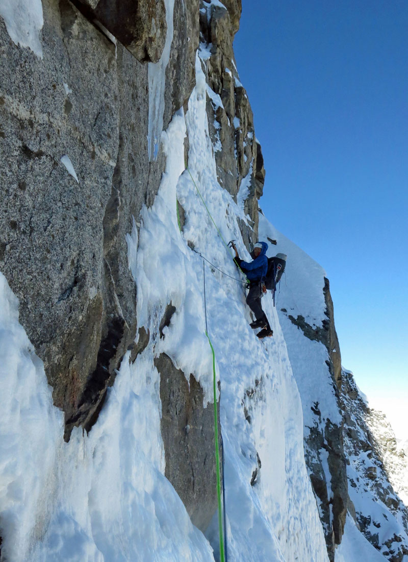 Mick Fowler leading a pitch on day four on the face of Sersank