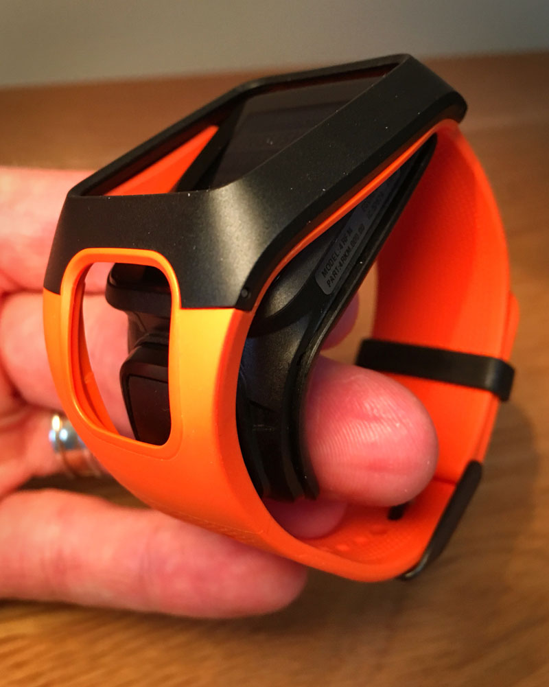 I'm a sucker for a bright coloured watch and the orange strap with black watch housing really made it stand out. Interestingly the watch unit is designed to easily pop in and out of the strap, making it straight forward to swap straps, something that requires a screwdriver with many competitor watches. To recharge or synchronise the watch via a computer you also need to remove it from the strap however, which made it a little more complicated than other watches I've used.