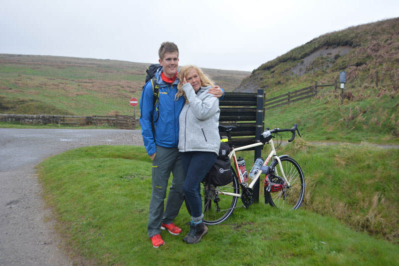 After weeks of fine weather the day started with steady drizzle as Alex, joined by family and friends, set off from Derbyshire Bridge, in the Peak District's Goyt Valley, towards Shining Tor, his first objective. Commenting on the weather and the journey ahead Alex said "It will get me ready for Scotland, where I'm expecting the worst of the weather and also the most critical timings with ferry connections to make that are all pre-booked" With panniers weighing in at 10 kg, including everything bar a lightweight, 600g, sleeping bag (to be added later today) and food and a bike weighing 15kg it's a minimalist set up for the 10 week journey and to keep the weight down food and additional essentials are being posted ahead in batches to be collected every 3 or 4 days.