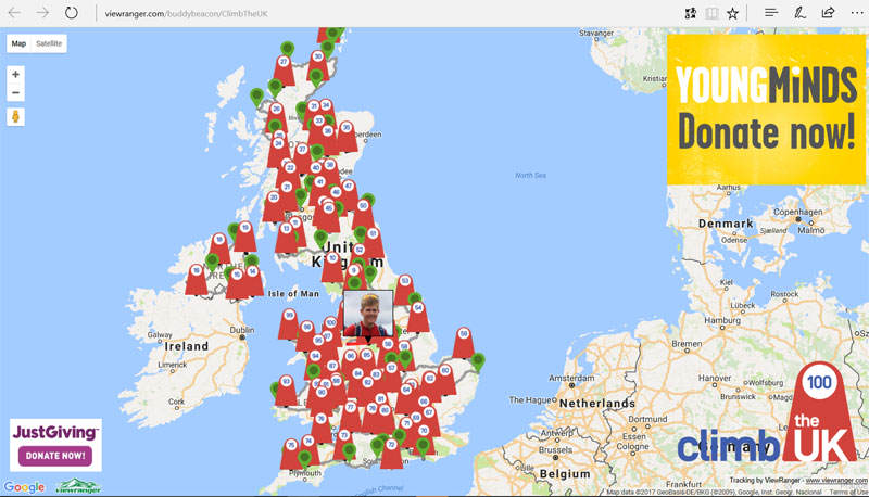 Alex is a prolific charity fundraiser and will be using ClimbTheUK to support YoungMinds – the UK’s leading charity committed to improving the emotional wellbeing and mental health of children and young people – and is encouraging as many people as possible to download his route in the ViewRanger app and join him on individual sections of the challenge.