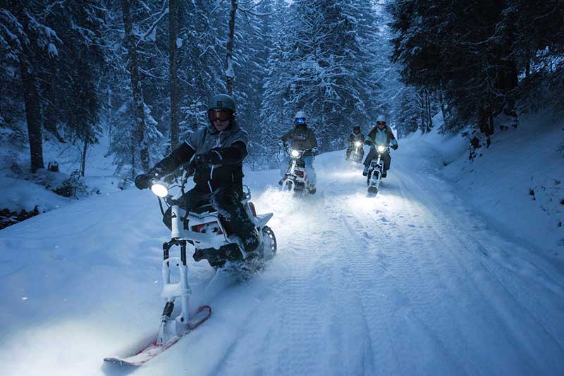 MoonBikes (moonbikes.com), a completely new concept, are fully electric snowmobiles, but without the noise and pollution. They are easy to ride and lighter than a snowmobile, but can still get up to speeds in excess of 40 km/h.