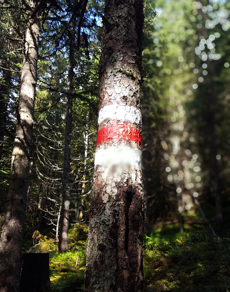 The Via Alpina 1 is marked regularly along its path by very obvious trails with a red and whited banded way-marker.