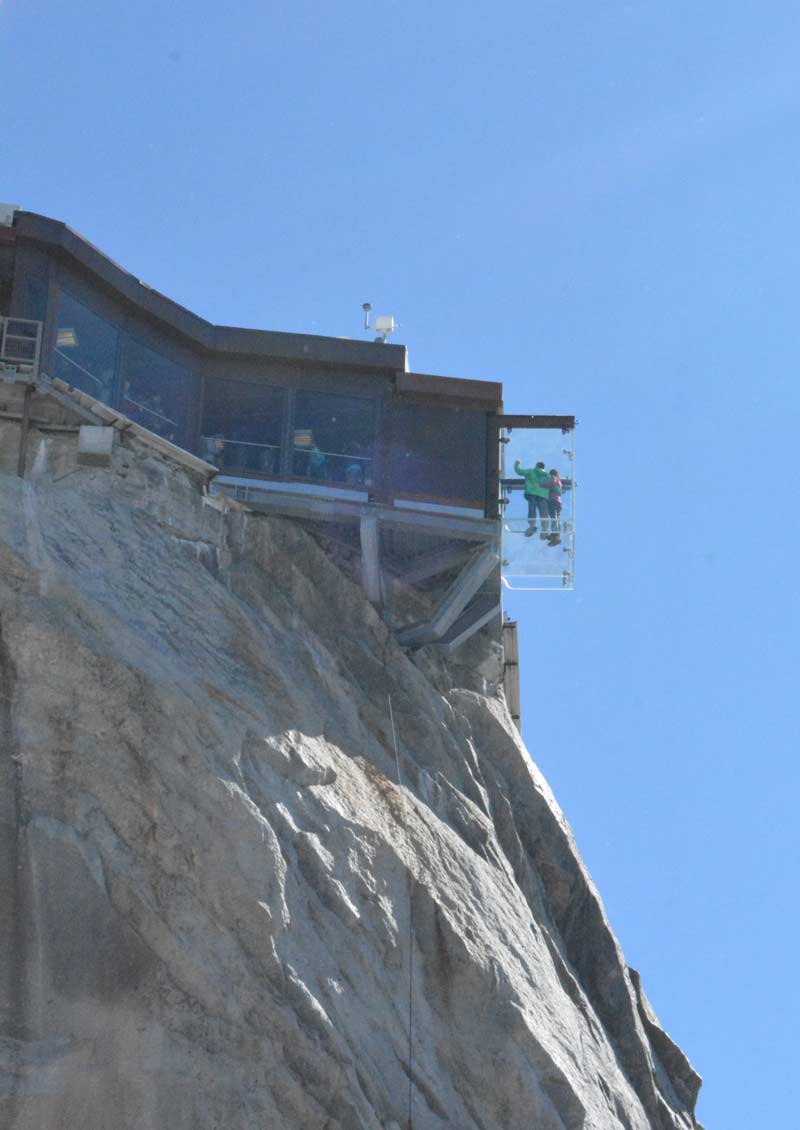 You can marvel at mountain climbers leaving to attempt the surrounding peaks or photograph them finishing up a ridge onto the viewing platform, you really feel like you are amongst it, like a mountaineer. I could have spent all day up here watching the views change as the clouds billowed up, it really is a must visit place. If you like being brave, try stepping into the void, which is a glass room with a glass floor over a big drop to the glacier below, not for the faint hearted.