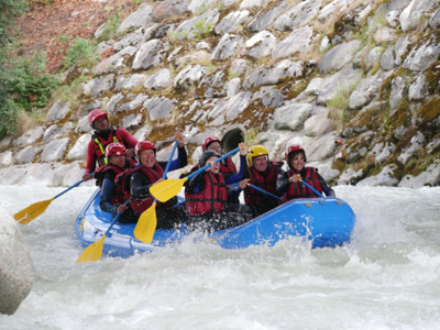 Was it serendipity that our next adventure was white water rafting in the meltwaters of the Mer de Glace? The Arveyron flows from the snout of the glacier into the Arve, its absolutely icy water at only 3C is fast flowing and opaque with granite rock flour from the glacier. It flows through Chamonix town centre and you feel like a hero as you paddle by the restaurants and cheering bystanders on the bridges. If only they knew the fun and buzz you were having in the rapids as the rubber boat is bucked wildly about. I couldn’t keep the smile off my face; mind you I was glad I didn’t get ditched into the freezing water.