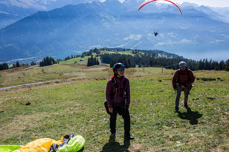 Paragliding has always appealed to me, and with my growing interest in alpinism, it’s a no brainer that it makes the descents much speedier! During a Women Rise Up meet held in Zermatt, the two other experienced female climbers expressed their passion as paragliders and spoke of how effortless it felt. I was super excited to see if I could find enjoyment in this new form of flight – and what it would feel like to paraglide over Interlaken!