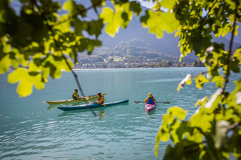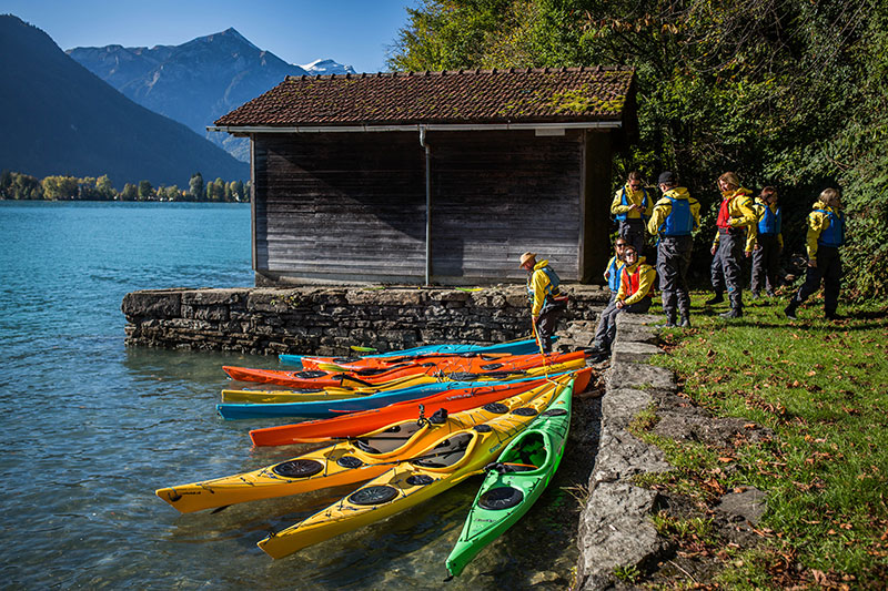 Having kayaked on slightly choppier surfaces in the Lake District to the fjords of Norway, the kayaking on Lake Briensee felt elegant and easy on my aching shoulders. We’ were told by our guides to be mindful of the traffic that also shares the water – including several boat tours – but the mood was one of calmness and serenity, until one of our members accidentally found herself in the water due to a small nudge by one of the other kayaks. After a slight squeal on discovering the water’s glacial temperatures, the instructors encouraged her back into the kayak, and wasn't long before we moored ashore in a small bay to visit a castle that overlooks the lake. The lake is fed by several significant rivers- the Aare at its eastern end, the Giessbach at its southern shore from steep, forested, and rocky hills of the high Faulhorn and Schwarzhoren more than 2,000 metres (6,600 ft) above the lake, and by the Lütschine, flowing from the valleys of Grindelwald and Lauterbrunnen, at its south-western corner.