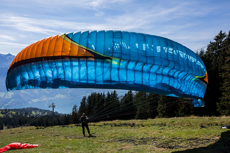 Descending into Interlaken, the views are of Harder Kulm, Jungfraujoch and the town’'s sprawling buildings, I felt a real sense of calm and mindfulness during the flight. We were lucky – managing to find several thermals above the treetops, to circle up into the sky and look down on visitors watching us, agog. It was a sense of bliss, rather than adrenaline, as I took in the lakes, the mountains, the skyline. A natural way to descend the hills, losing around 1000m of height gain – perfect.