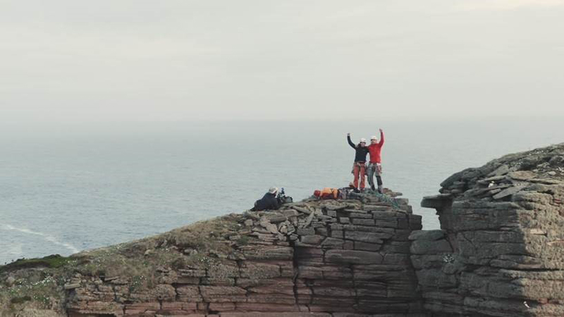 Jesse and Molly celebrating the first lead climb of the Old Man of Hoy (©Alastair Lee/Brit Rock Film Tour 2019)