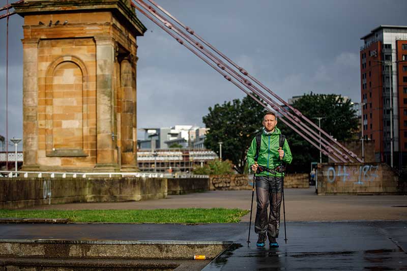 Hiking alone with no support crew or pre-arranged help, James carried all his kit and camping equipment in a backpack. He re-supplied with food en route and stayed in hotels in more urbanised areas.
