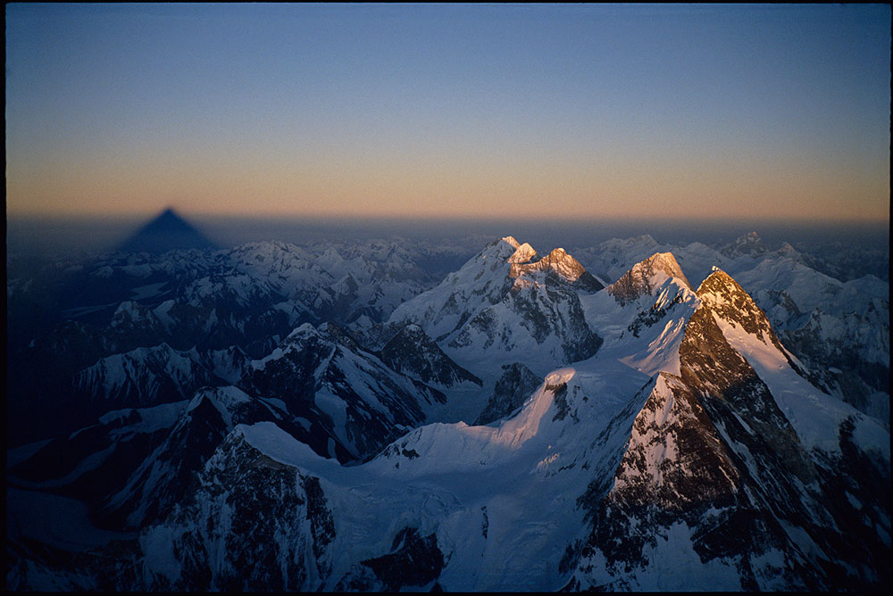 Shadow of K2 from summit as sun sets