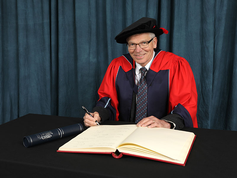 Mick has been awarded an Honorary Doctor of the University (HonDUniv) at the ceremony at the University’s Buxton Campus in the Devonshire Dome today, alongside hundreds of University of Derby graduates.