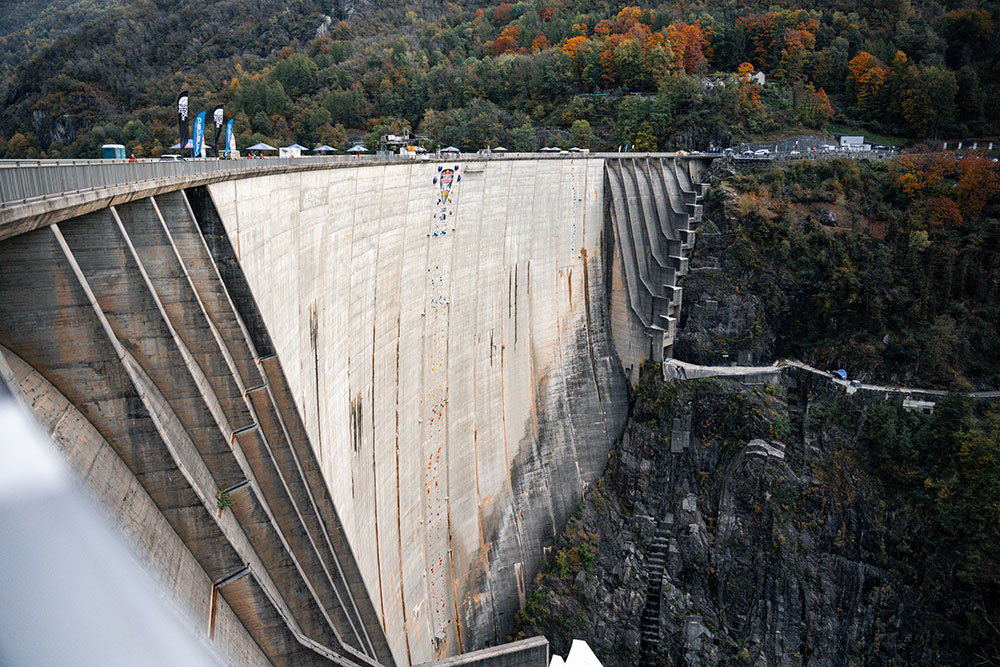 - The first edition last October saw 16 climbers in teams of two compete in the first-ever head-to-head multi-pitch climbing competition up 180m artificial routes on the Verzasca Dam's imposing 220m sheer face.