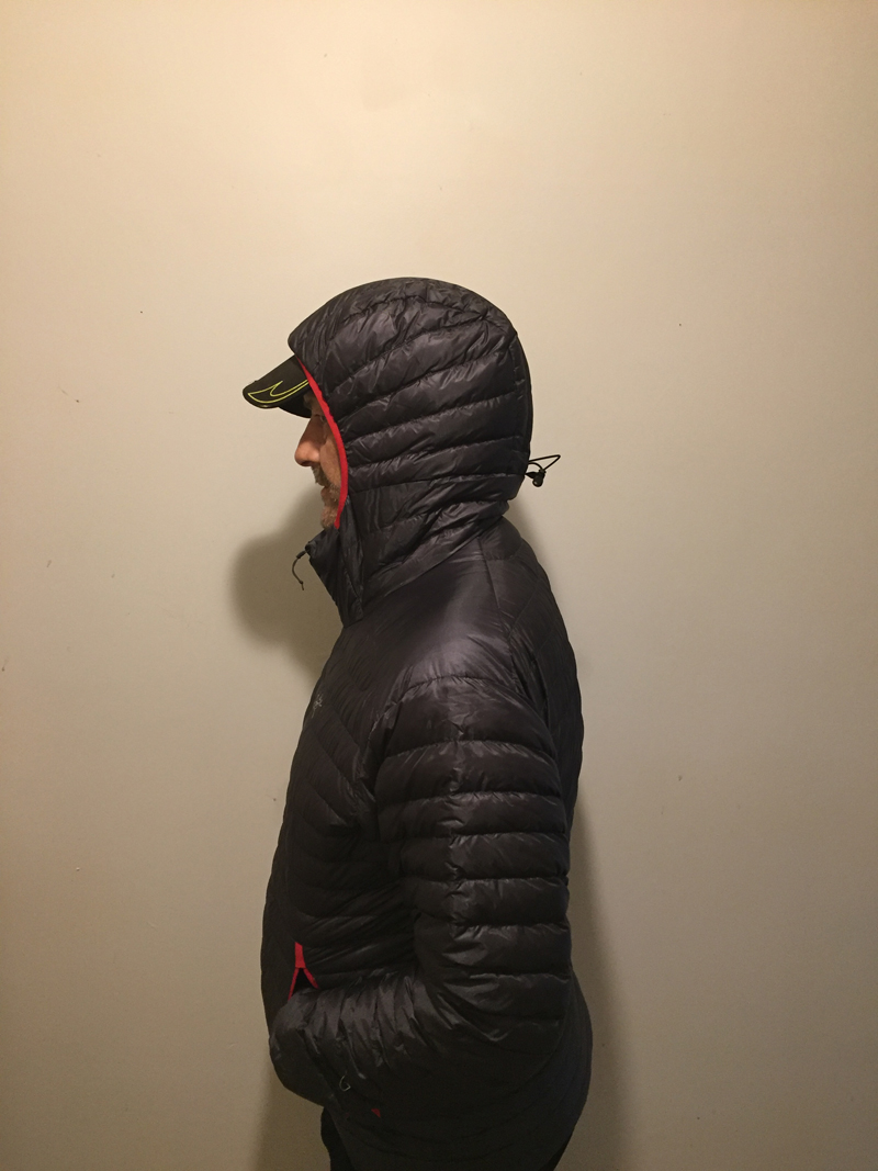 The fit is very much Arcteryx, trim, slim and tailored. Despite the slim fit, however, it's very much built for movement with under-arm gussets that allows a full range of flexibility from the shoulders down to the cuffs. At a push it will accomodate both a baselayer and a thin midlayer underneath but it's really in its element as a mid/outer layer, being slimline enough to easily take a waterproof shell over it. Despite being short the articulation around the shoulders and arms means hem-lift is minimal even with arms at full stretch above the wearer without cinching the hem in with its adjustable drawcord.