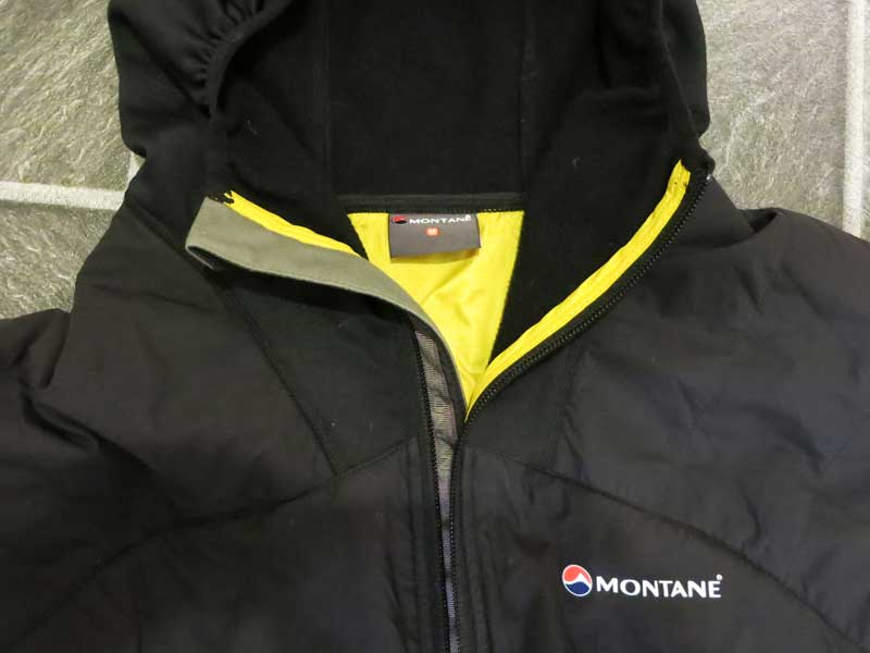 The arms and hood are Montane’s Dryactiv Stretch material. The hood is a neat scuba style, it is well shaped and is comfortable under a helmut.