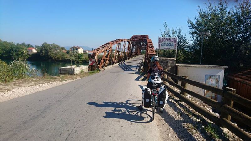 After a day of seeing the history of Mostar in Bosnia we set off back to Croatia. One side had the normal wide road and on the other side of the Neretva river. The first few miles were the front line of the tragic war of the nineties and once out of the town the trappings of tourism faded away. A gravel road/track remained mostly rideable and the peaty banks of the Neretva oozed a greenness of light. Small waterfalls, rapids and endless variety of kingfisher and other birds. Coming across perhaps one or two cars always to be met with smiles and waves. A perfect day where the legs turn and the wheels hum. A cold beer on the Bosnian side of the border before the passports get stamped and we cross back into the EU and Croatia. More industrial now but the Adriatic sea is ahead and the road is easy. No Dubrovnik crowds another cold beer before a few last kms and a cottage to ourselves in a vineyard for the night. A glass of red with a fresh filling and much needed meal and finally watching the pink sunset
