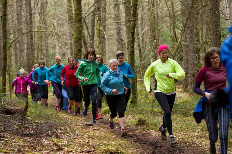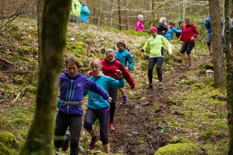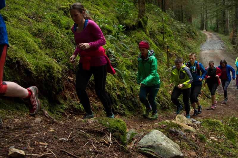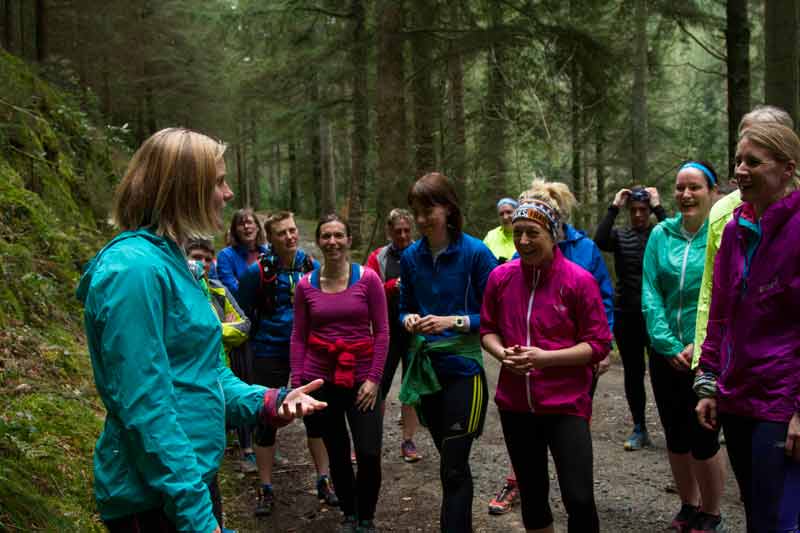 The trails around Coed Y Brenin really are a treat, with stone paths, running through woodland, by rivers and uphill through the green mossy ground. This section of the day is really useful as Anna and Matt taught us some really useful running techniques:
