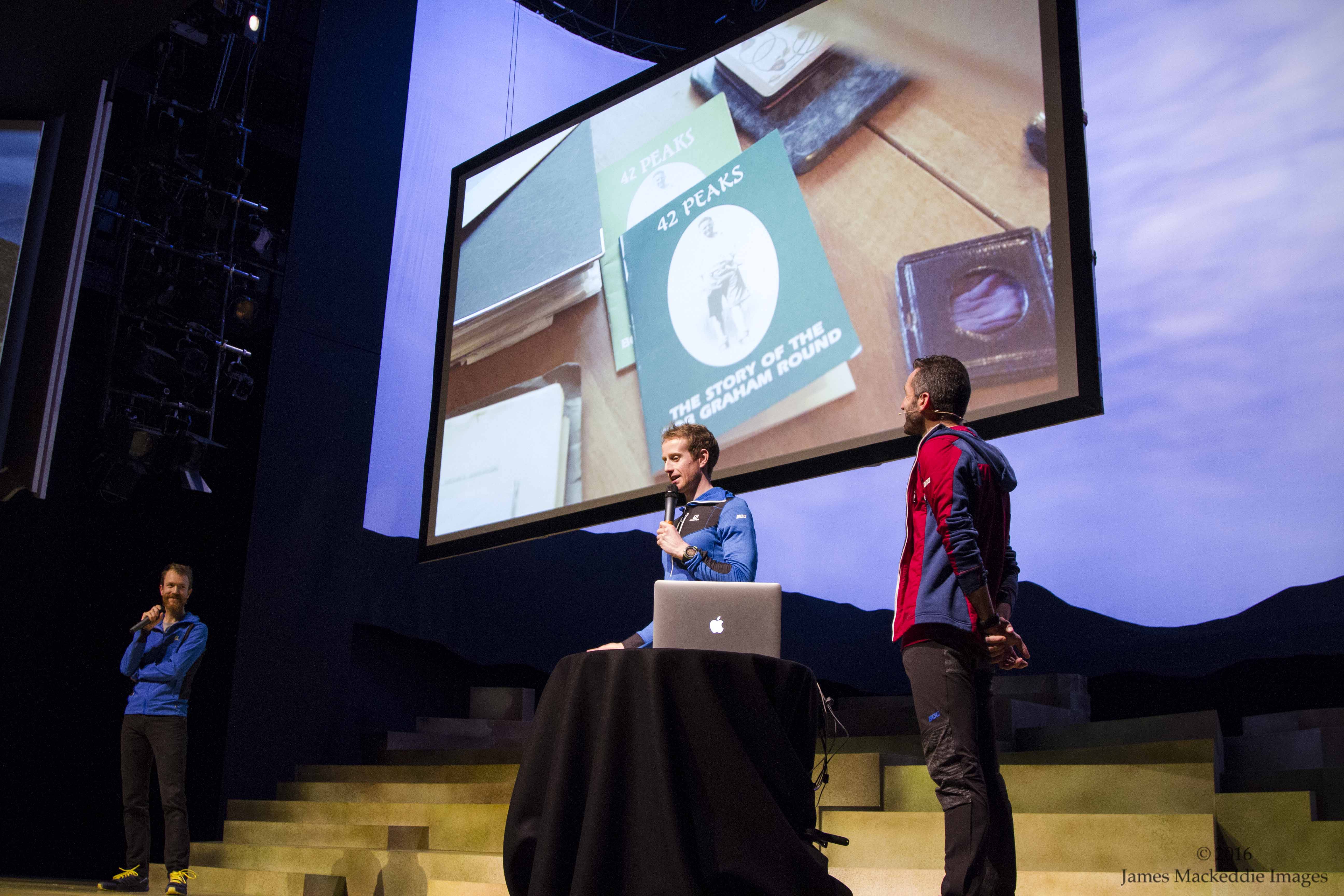 Taking us through the Summits of My Life project, Kilian’s personal quest to set records on several summits including Denali, The Matterhorn and Everest, comedy was evident from the first moments. As Kilian spoke to an expectant crowd, Seb moved the file tab to reveal a picture of Kilian smiling with blackened teeth. With the audience laughing, Kilian looked back to see he was the butt of the joke. And this set up the following half an hour or so. To be honest I lost all sense of time, as the pair entertained and informed, turning the feats of one of the world’s greatest endurance athletes into something greater.