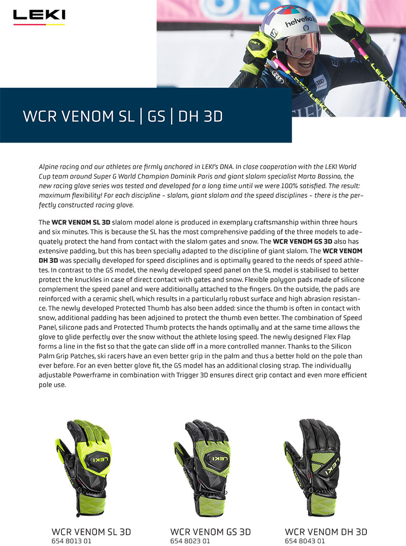 . The WCR VENOM DH 3D was specially developed for speed disciplines and is optimally geared to the needs of speed athletes.