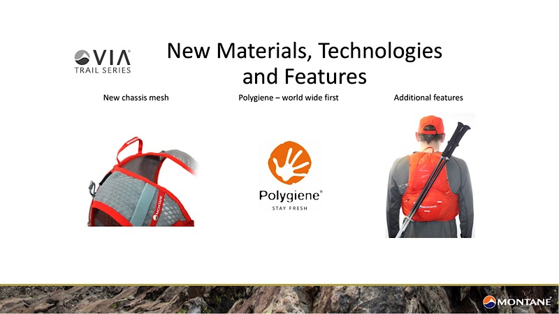 The big collaboration is with Polygiene. It has been impregnated into the fabric of the chassis of all Montane’s packs. This is a worlds first for packs and was the brainchild of Montane’s pack designer and was supported by Stephen.