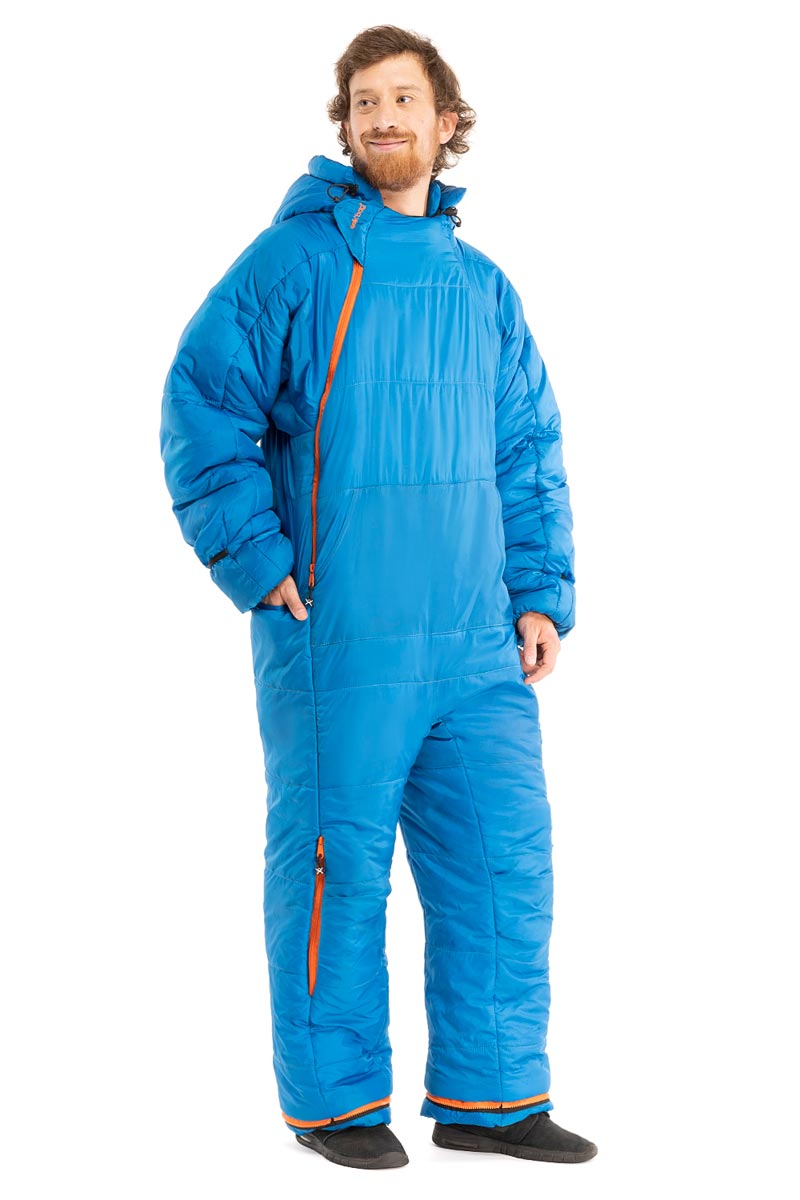 All Selk’bag products feature hollow-fibre synthetic insulation that has all the insulating factors of a traditional sleeping bag, while a DWR coating keeps moisture out. Selk’bag is available in sizes small to extra large and will fit wearers who are between 4’11” and 6’4” tall.