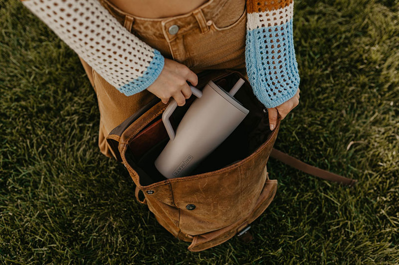 The rubber grip on the lid makes the Era easy to open without touching the straw, and the tapered base is easy and comfortable to hold, and compatible with vehicle cup holders. The tumblers are dishwasher safe.