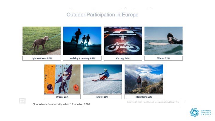 In addition, the EOG’s recent European outdoor participation study, in partnership with the It’s Great Out There Coalition (IGOT), established more opportunities to connect with consumers in different ways. Working with the global consumer trend agency the Foresight Factory, research was carried out during the second quarter of 2020, with consumers in seven European countries, providing insights about participation levels and intentions in all key outdoor segments.
