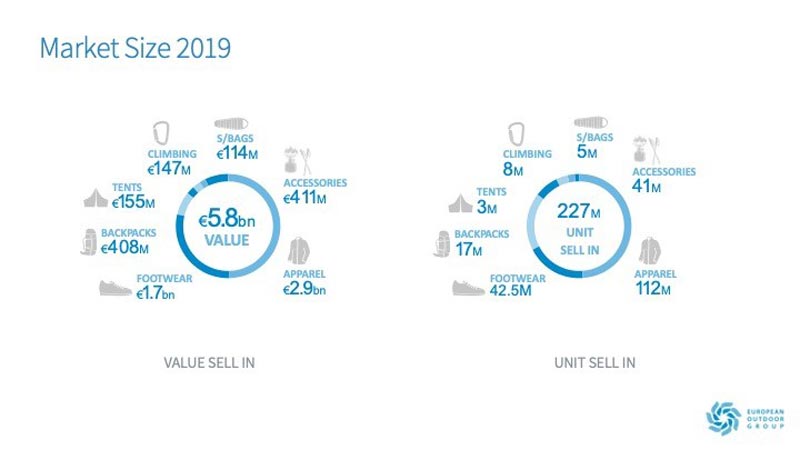 Results for 2019 show that the wholesale market for the year was worth €5.82bn*, representing an increase of 0.5% in value and 2.3% in volume compared to the previous year. The report covers products sold by over 100 outdoor companies in the apparel, footwear and hardware markets, and also includes outdoor sell-in figures from multisport/lifestyle brands. The EOG has received, analysed and interpreted data in seven main categories and 48 separate sub-categories. After a flat year in 2018 (compared to 2017), the modest market growth shown in the results demonstrates the resilience of the outdoor sector in already turbulent times, before the COVID-19 pandemic.