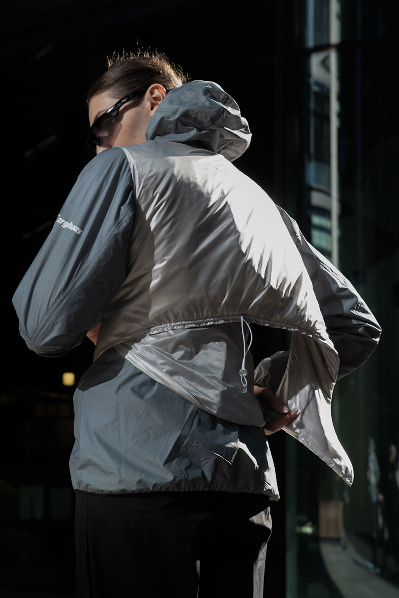Designed with removable components, the jacket allows the wearer to adjust insulation levels based on activity and climate. The modular system also enables a choice between loose fill or wadding, giving flexibility to the garment’s appearance and functionality.