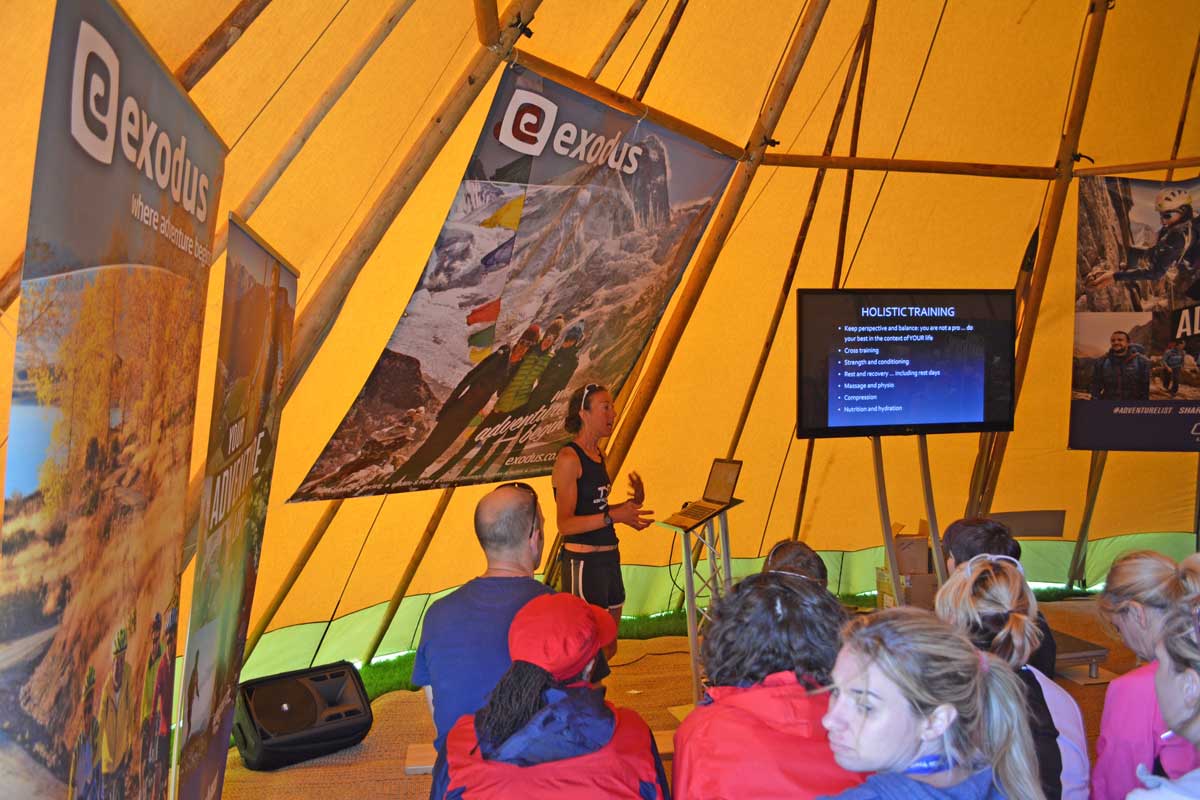 The Berghaus/Exodus Adventure Theatre ran continuously throughout the weekend with some highlights to match those across the road at the Theatre, with a typically engrossing talk from Mick Fowler and a unique and hilarious presentation from Mark Gilligan and David Powell-Thompson on how to make a book. The Adventure Theatre offers both an additional "theatre" to the main programme, allowing the festival to run simultaneous talks, and a chance to see some of the less mainstream adventures and this year's programme was a s good as it's ever been ranging from Iron Man legend Chrissie Wellington and Olympic medal winning open water swimmer Keri-anne Payne to the Meek Family with their mission to get families outdoors and trekking highlights around the world to waterfall walks in the Lake District.