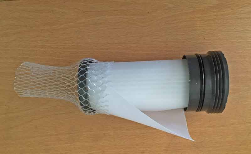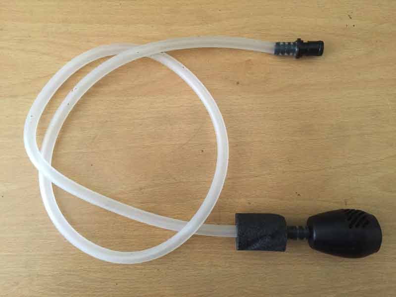 Float and filter fitted to the inlet hose. Note the float can be moved up and down the hose according to the depth of water.
