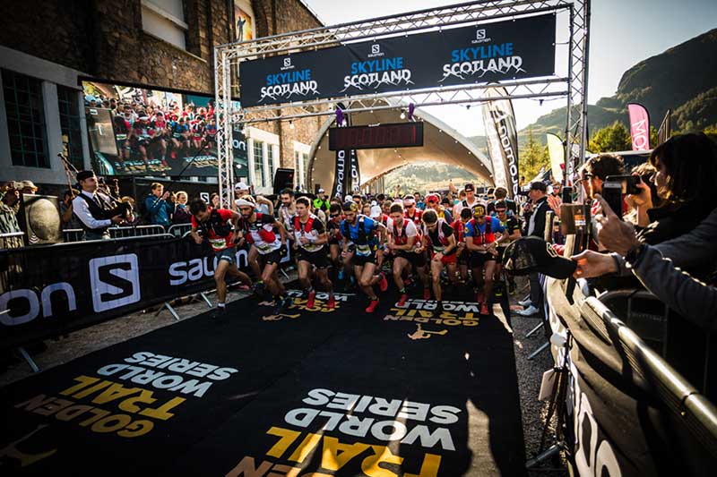The start of a Salomon Skyline Scotland race at the Event Village Photo:©No Limits Photography