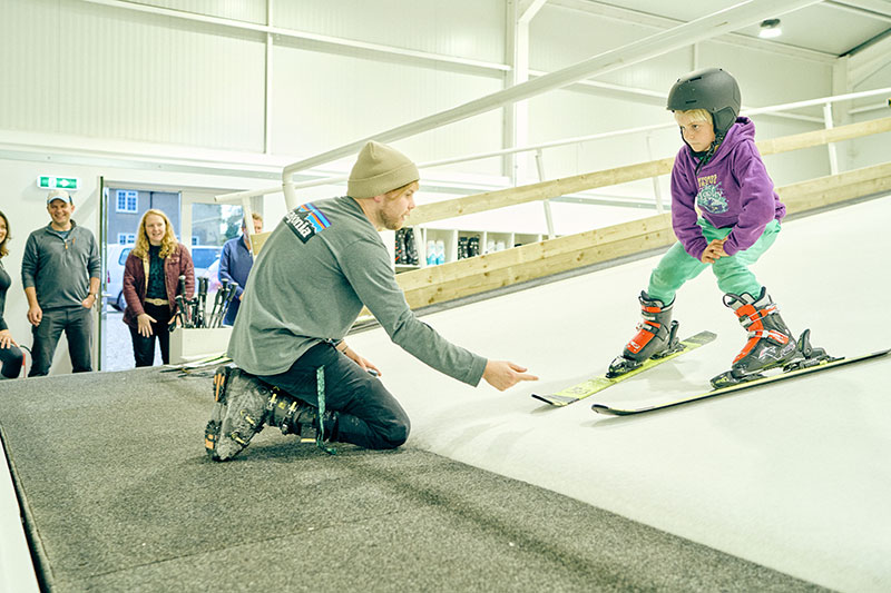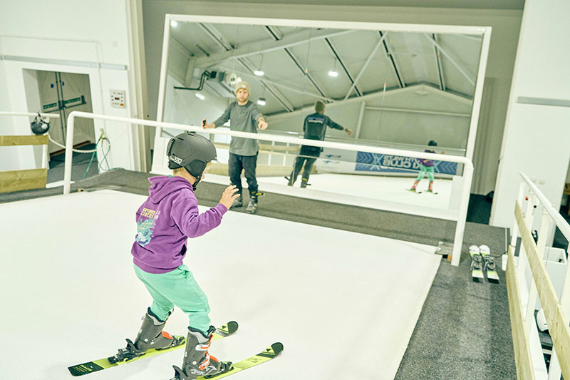 The Infinity Slope is a revolving dry surface that replicates the feel of skiing on snow, offering continuous, controlled terrain ideal for both beginners and advanced skiers. This cutting-edge slope can accommodate two skiers at a time, making it perfect for personalised coaching or family-friendly sessions.