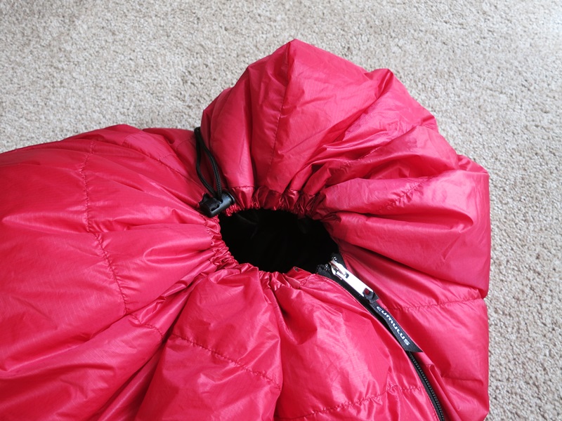 Build wise it has all the makings of a really good sleeping bag. The drawstring around the main hood is cord which I like. Some have elastic which lets heat out in my opinion. Once it’s drawn in, it’s in. The neck baffle has an elastic drawcord, a safe option so not to strangle myself whilst attempting to keep heat in. The Velcro connection for the neck baffle has a handy fold back bit that allows it to be sealed off so it doesn’t get caught up when you don’t need it.