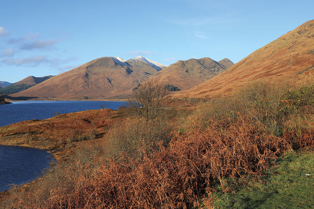 Loch Cluanie with snow capped Aonach Meadhoin and Sgùrr an Fhuarail then Am Bàthach Photo: Rab Anderson