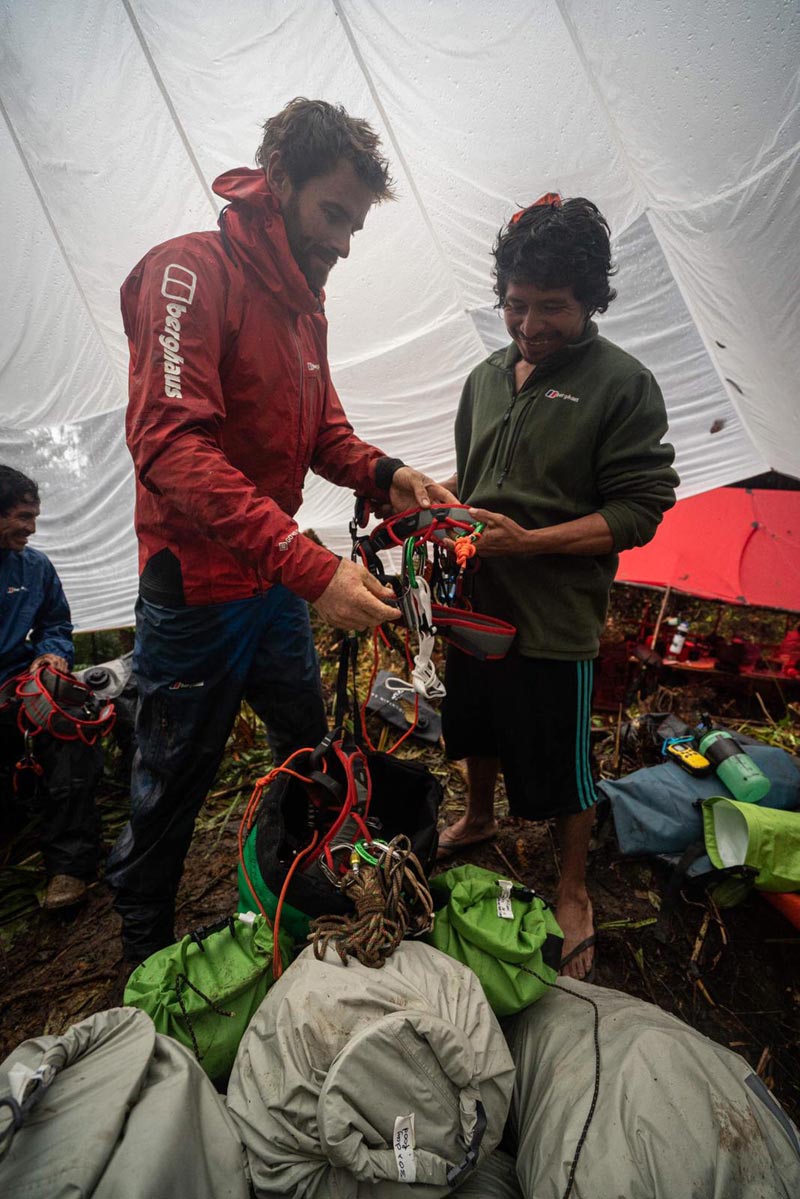 Once basecamp was organised and fully up and running, the full team of 21 ate together for the last time as a complete unit – the climbing team of six, porters, guides and trail builders. The following morning, 10 of them departed, leaving the core crew with five Amerindians as vertical-terrain porters.